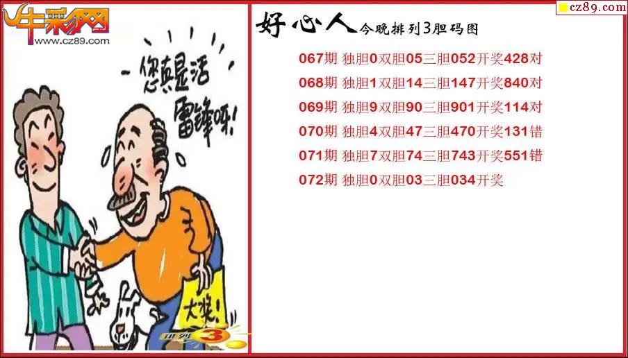 2026072期P3好心人胆码图